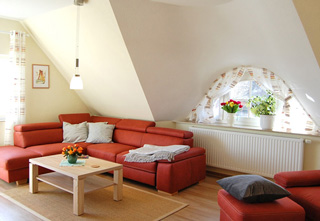 Die großzügige und helle Ferienwohnung (ca. 90 m²) für 2-3 Personen befindet sich im Obergeschoss unseres Einfamilienhauses.